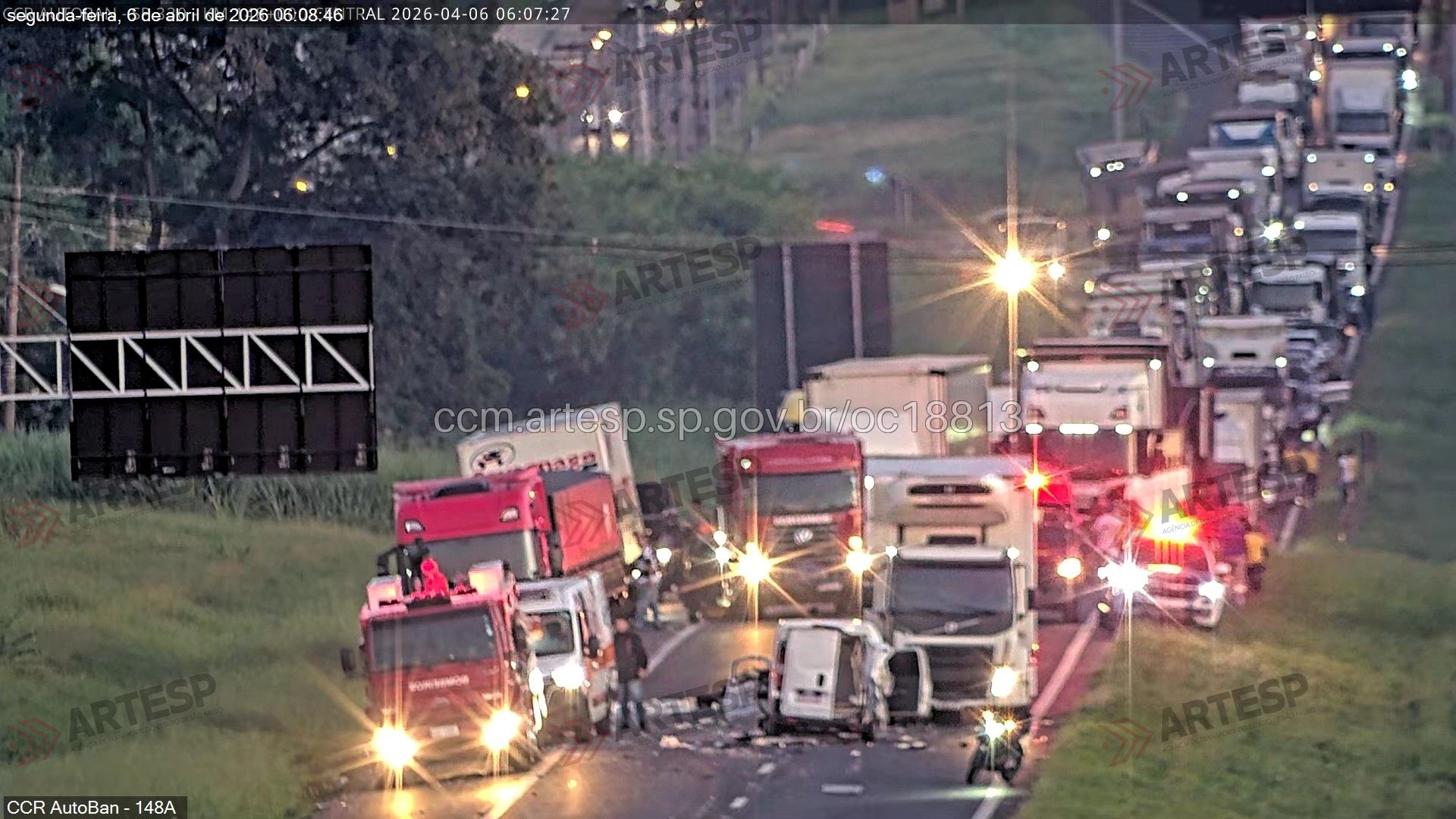 Segundo informações da concessionária, todas as faixas e o acostamento precisaram ser bloqueados para atendimento da ocorrência.