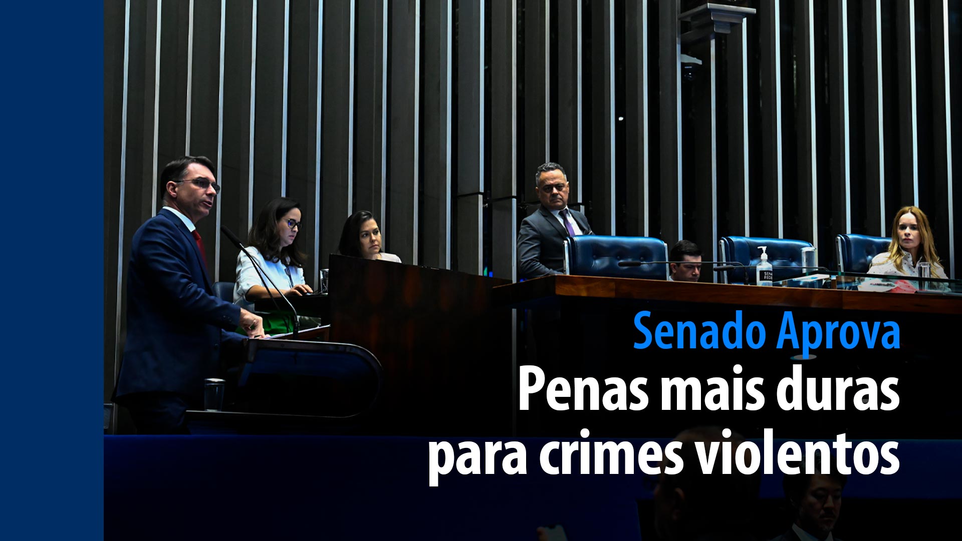 O Senado aprovou projeto de lei que endurece as penas para os crimes cometidos com violência (PL 4.809/2024). Uma das mudanças é a redução do limite para que o cumprimento da pena seja iniciado em regime fechado. Hoje, apenas quem é condenado a mais de oito anos começa no fechado. Com a mudança, condenações superiores a seis anos já terão início nesse regime. A proposta também inclui na lei (tipifica) novos crimes para reforçar os mecanismos de combate ao crime organizado. O texto segue para a Câmara dos Deputados.
