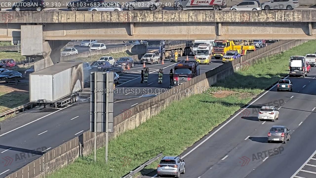 Um incêndio em uma carreta provocou a interdição total da Rodovia Anhanguera (SP-330), em Campinas, na manhã desta segunda-feira (23). A ocorrência foi registrada por volta das 7h12, na altura do quilômetro 104, no sentido Sul.